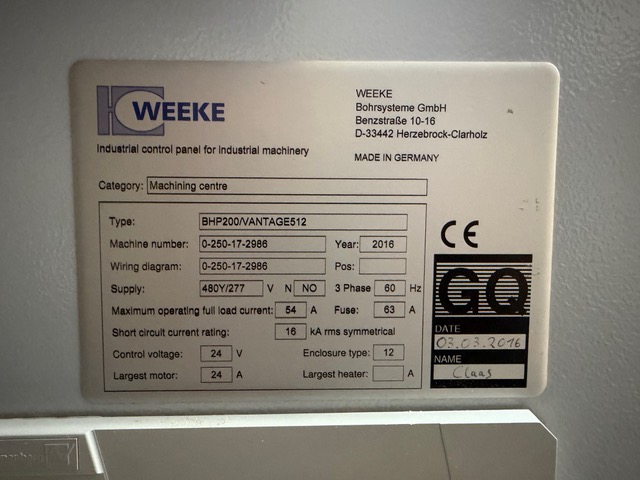 | Machine Model | WEEKE VANTAGE 200/512 N & M PT |