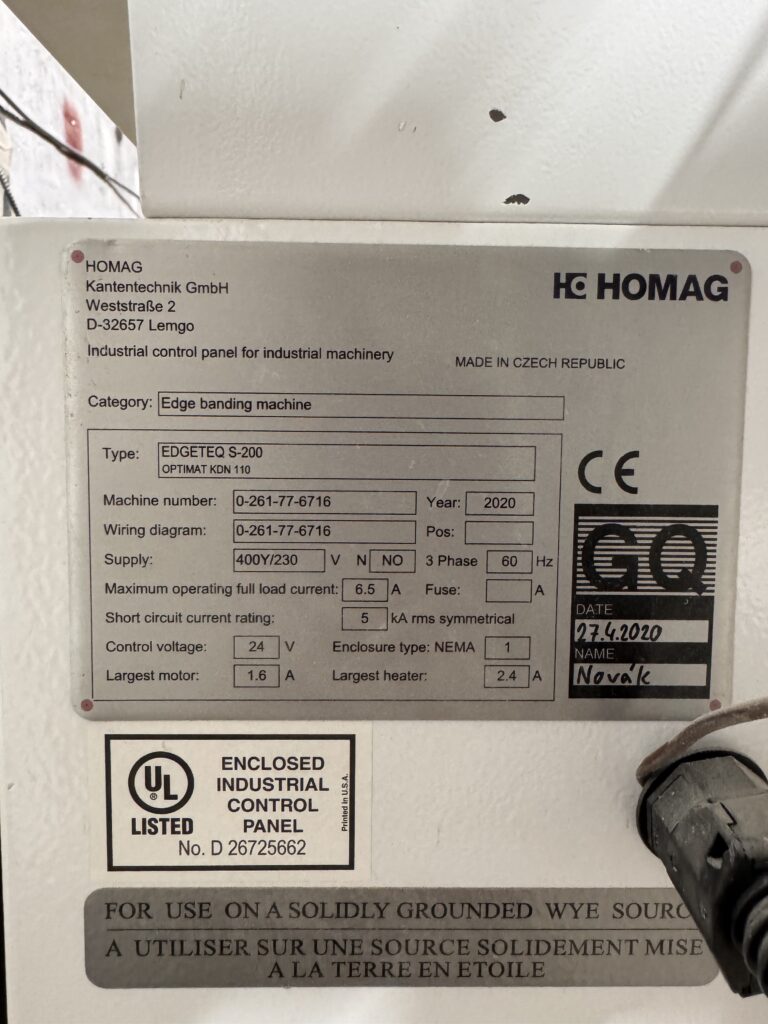 2020 HOMAG S-200 B Single-Sided Edgebander